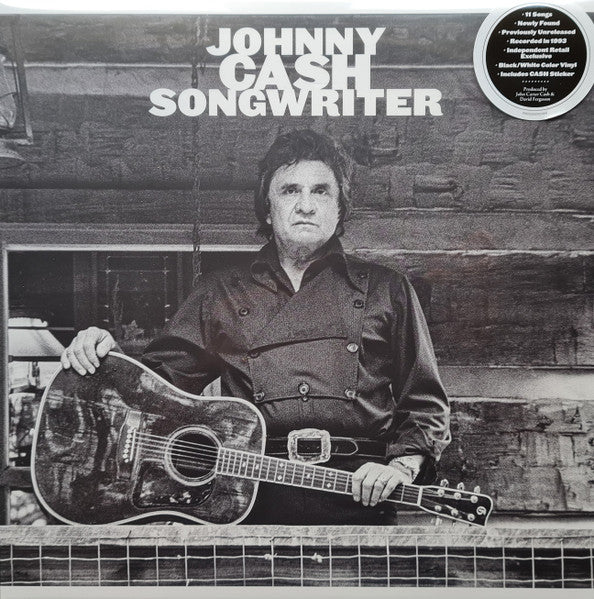 - Hype sticker: “11 songs newly found, previously unreleased, recorded in 1993, independent retail exclusive, black/white color vinyl, includes CASH sticker, produced by John Carter Cash & David Ferguson, 00602458902464.”