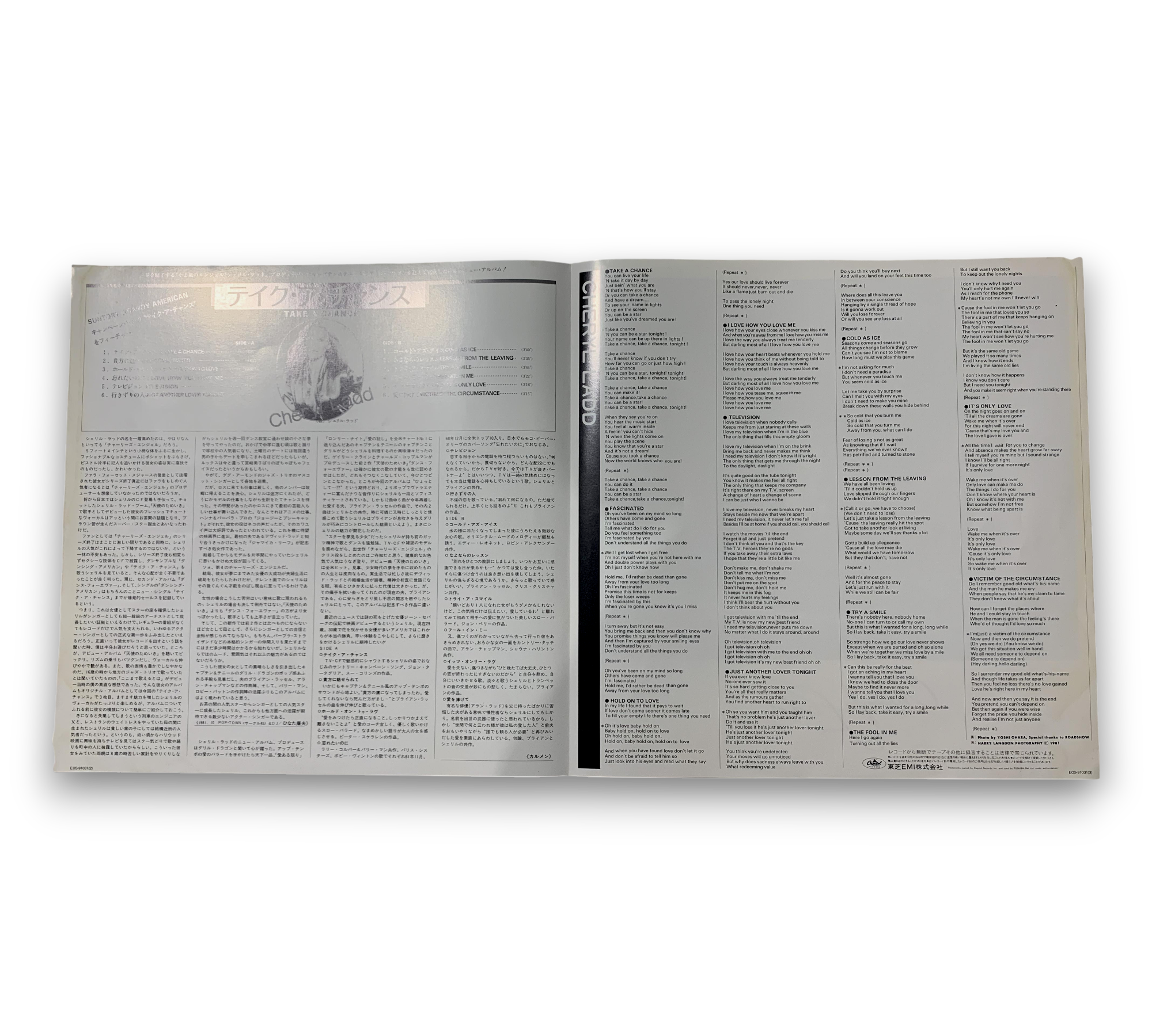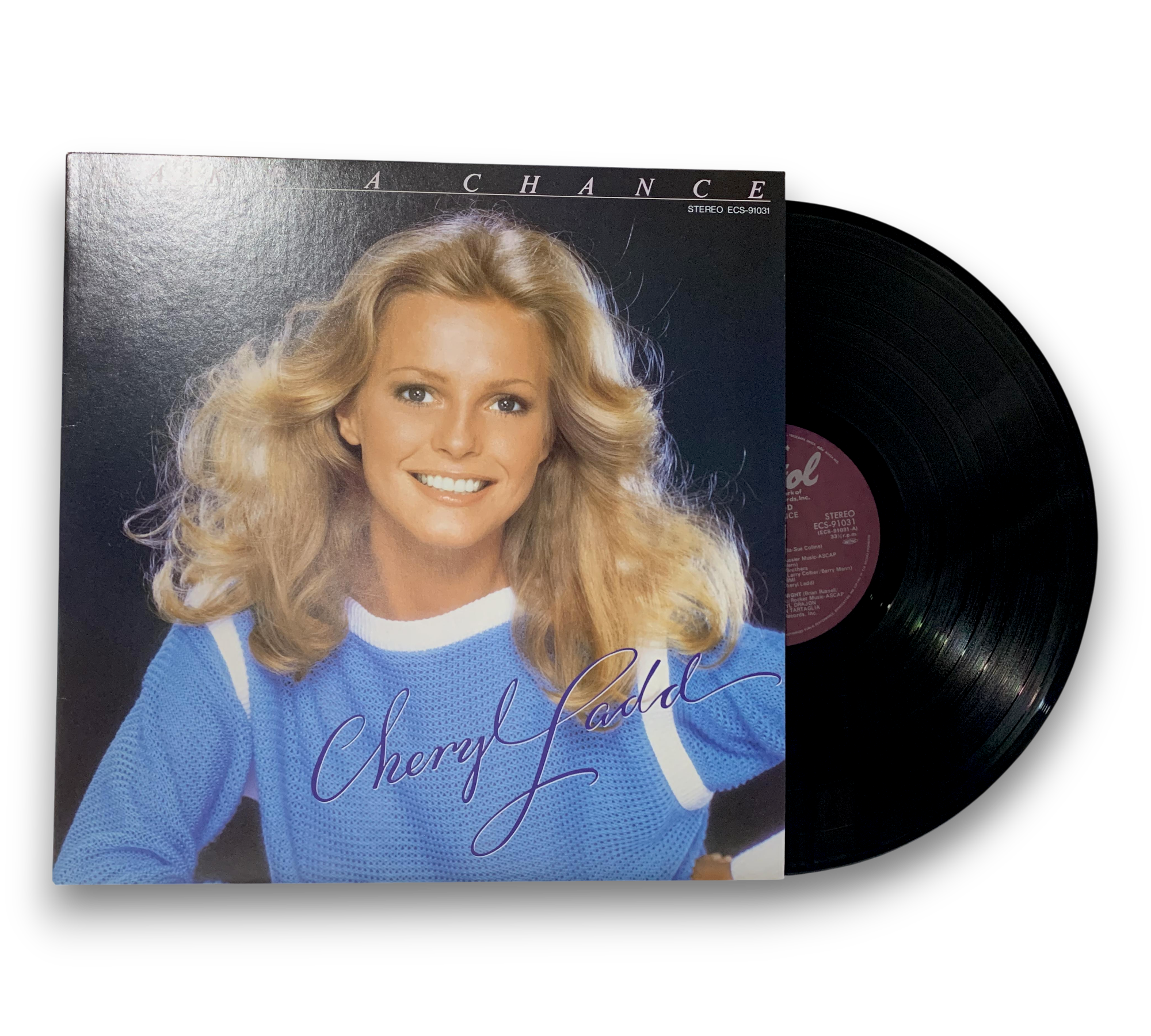 Cheryl Ladd's "Take A Chance," her third studio album released exclusively in Japan in 1981, showcases her musical talents with a collection of heartfelt ballads. This vibrant vinyl features two tracks co-written by Ladd herself and includes a 24"x12" insert with lyrics and a biography, along with a stunning 36"x24" single-sided poster and the traditional obi. A true gem for pop enthusiasts and collectors alike, this album captures the essence of Ladd's artistry in a beautifully packaged format.