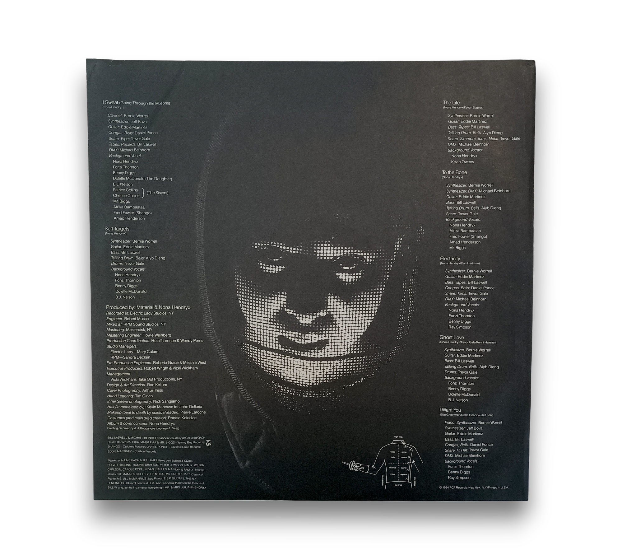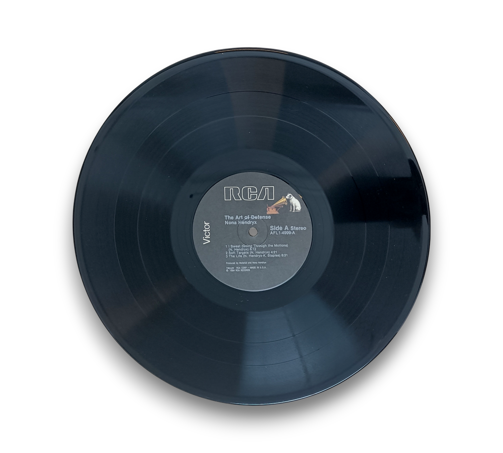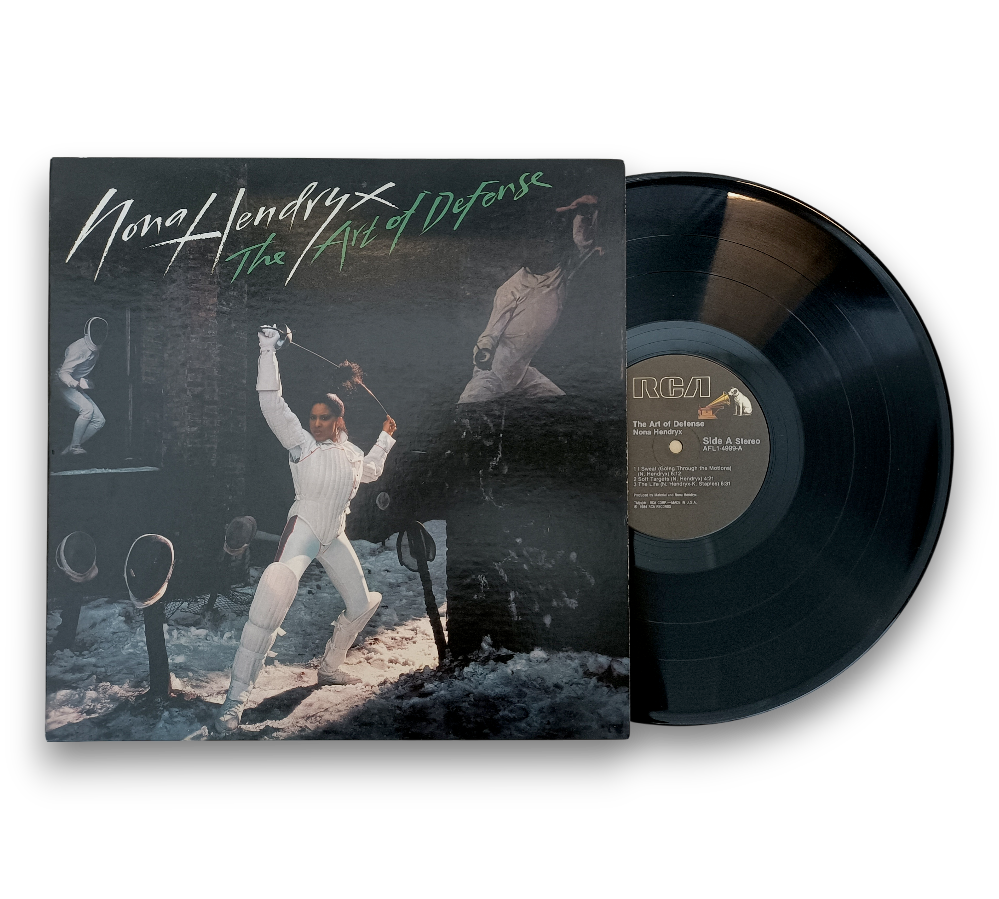Nona Hendryx's "The Art of Defense" showcases a blend of innovative sounds recorded at Electric Lady Studios and mixed at RPM Sound Studios. The album features contributions from notable artists, including Bill Laswell and Afrika Bambaataa. The cover art, courtesy of A. Tress, complements the album's dynamic style. The record is pressed under the RCA label, with runout details etched for authenticity. For specific details regarding the included packaging, please refer to the accompanying photos.