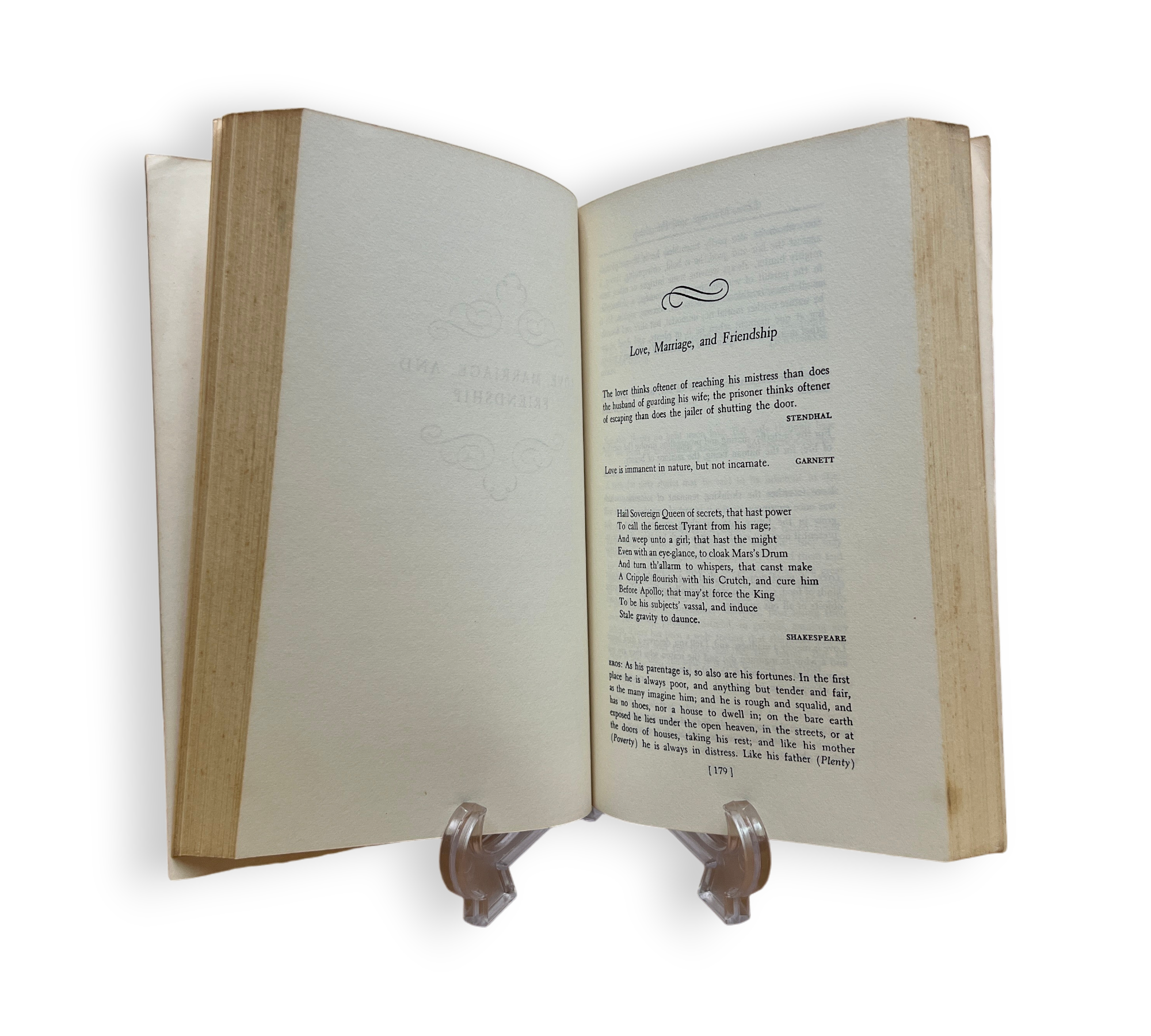 Binding of book is intact. Sunned covers with some shelfwear, foxing and creasing on covers of book. Some tanning, foxing and edgewear on edges of book. Dampstain on fore edge of book. Slight creasing and foxing on insides of covers. Bookplate on inside of front cover. Dampstain and very little foxing on certain pages.