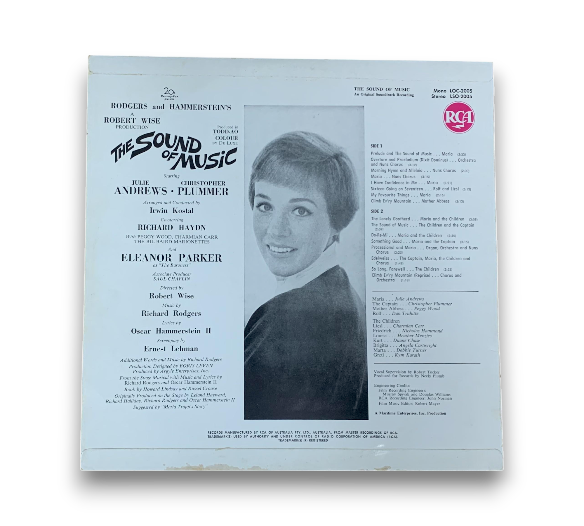 This is the Australian release of the original soundtrack recording of Rodgers and Hammerstein's "The Sound of Music." Manufactured by RCA of Australia Pty. Ltd., this album features music arranged and conducted by Irwin Kostal. It achieved remarkable success, reaching number one on the Australian charts on April 24, 1965, and maintaining that position for a total of 76 weeks, with its final week at number one being April 1, 1967. For further details regarding the condition and packaging, please refer to the accompanying photos.