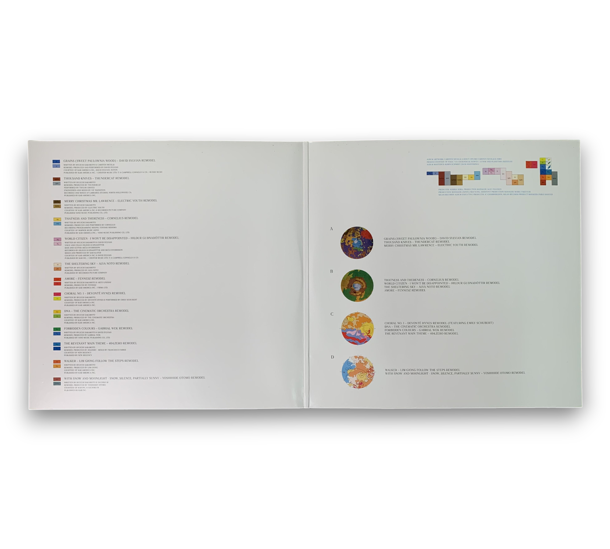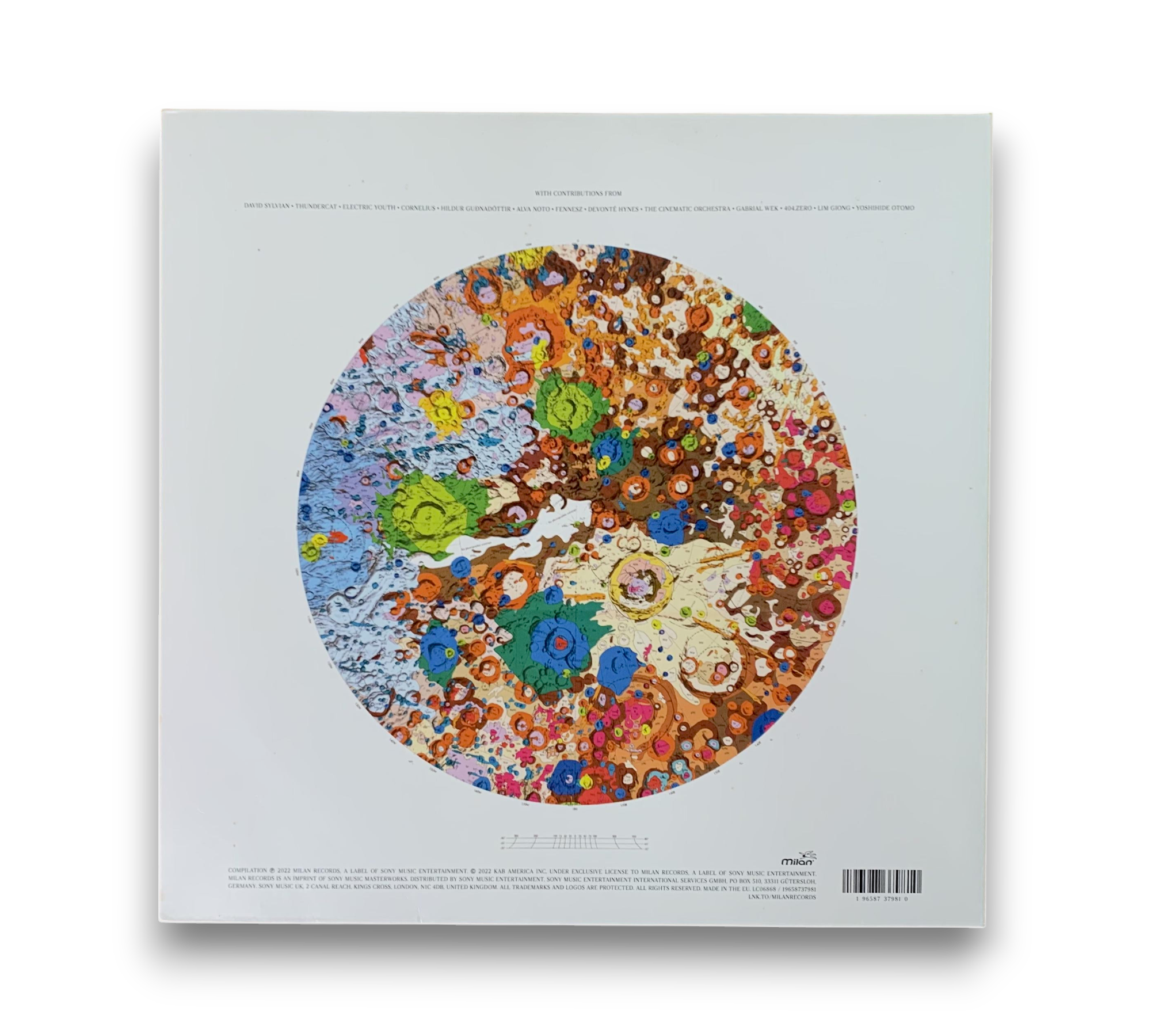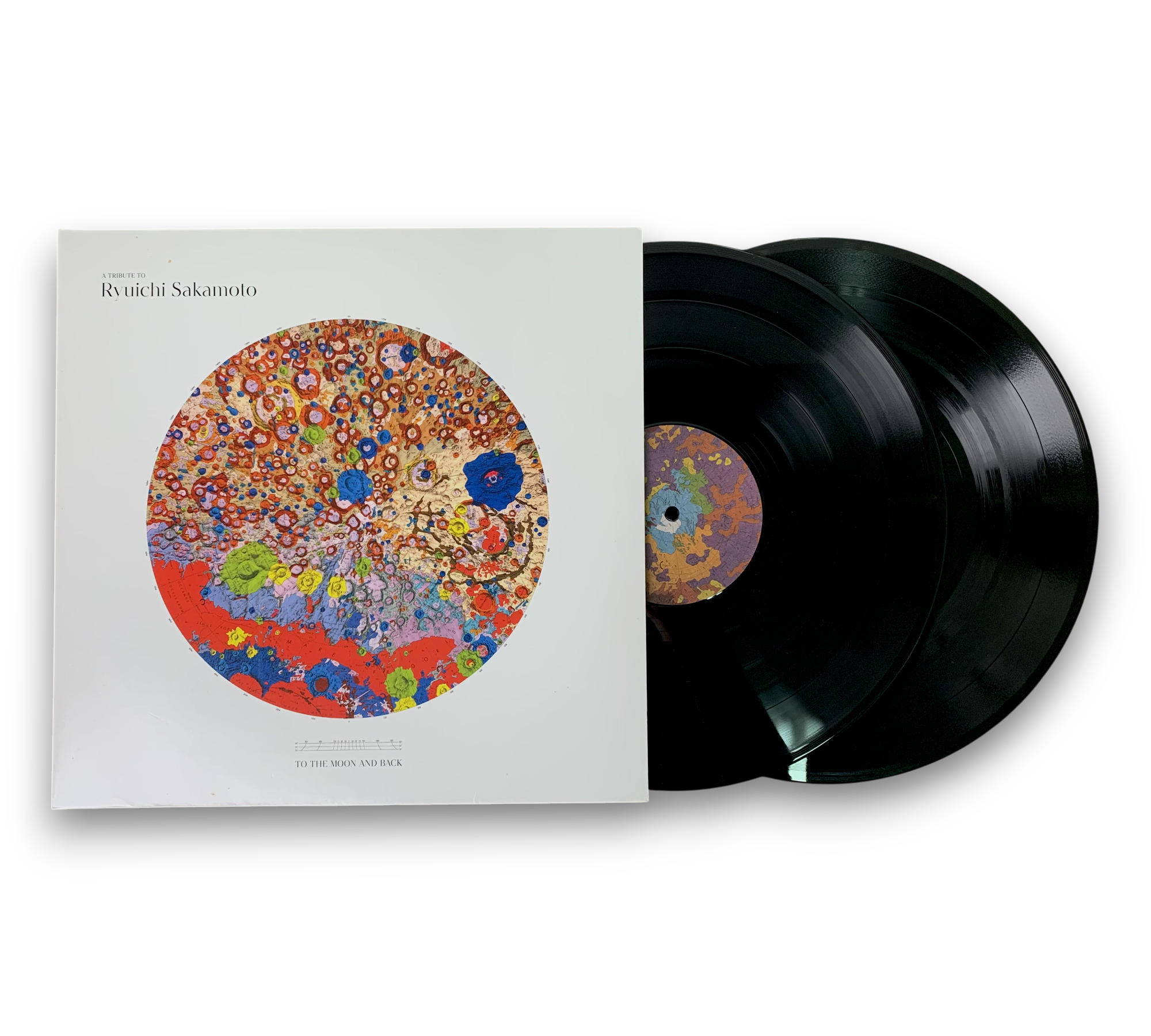This listing features "A Tribute To Ryuichi Sakamoto - To The Moon And Back," presented in a standard black retail version with a gatefold sleeve. The back cover indicates it was made in the EU, displaying the catalogue number along with distribution addresses in Germany and the United Kingdom. The runouts are etched, with specific identifiers for the pressing. For further details regarding the packaging and inserts, please refer to the accompanying photos.