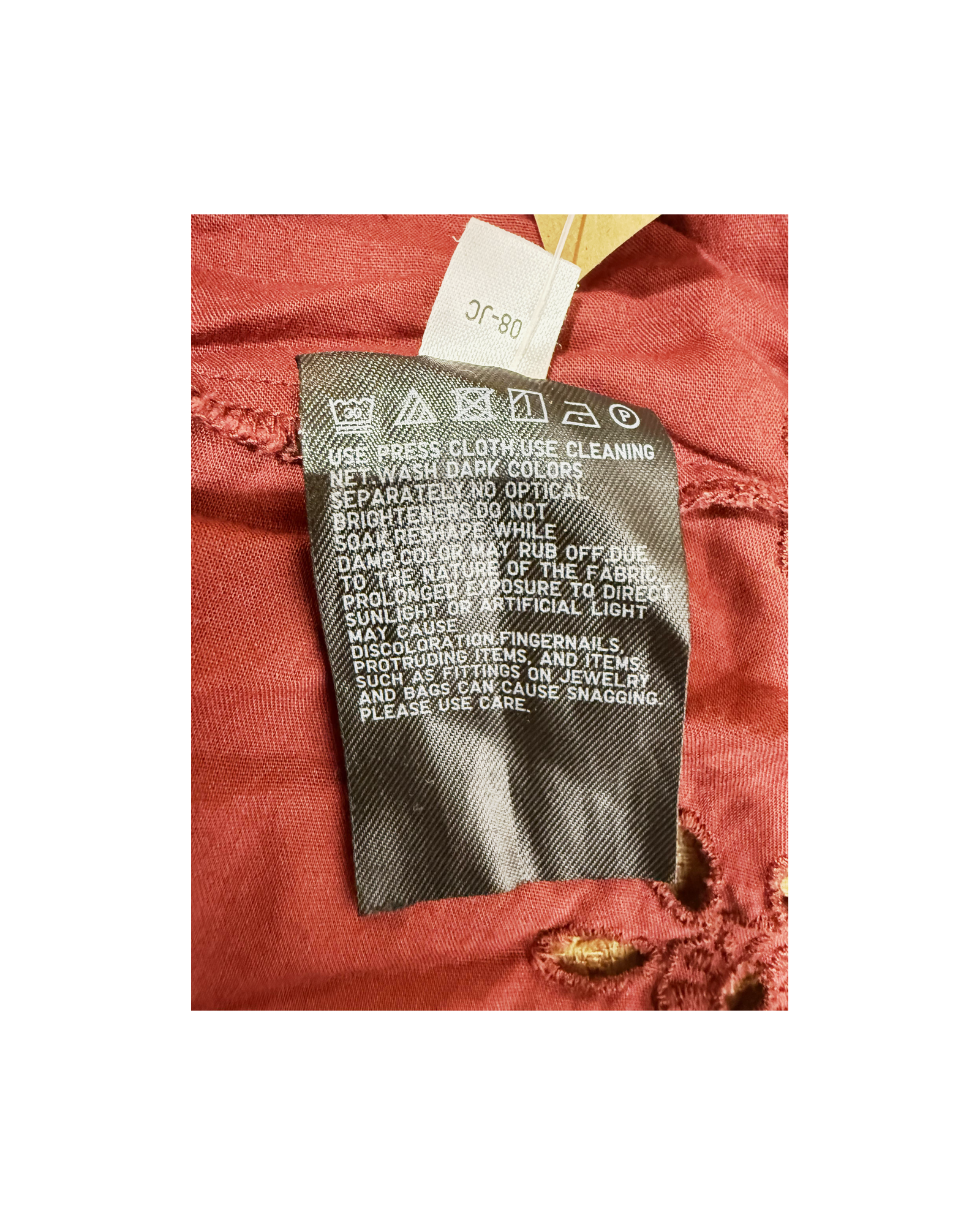 This item is relatively new without tags in place. It resembles a piece of clothing that have been worn once or twice, with no visible signs of wear!