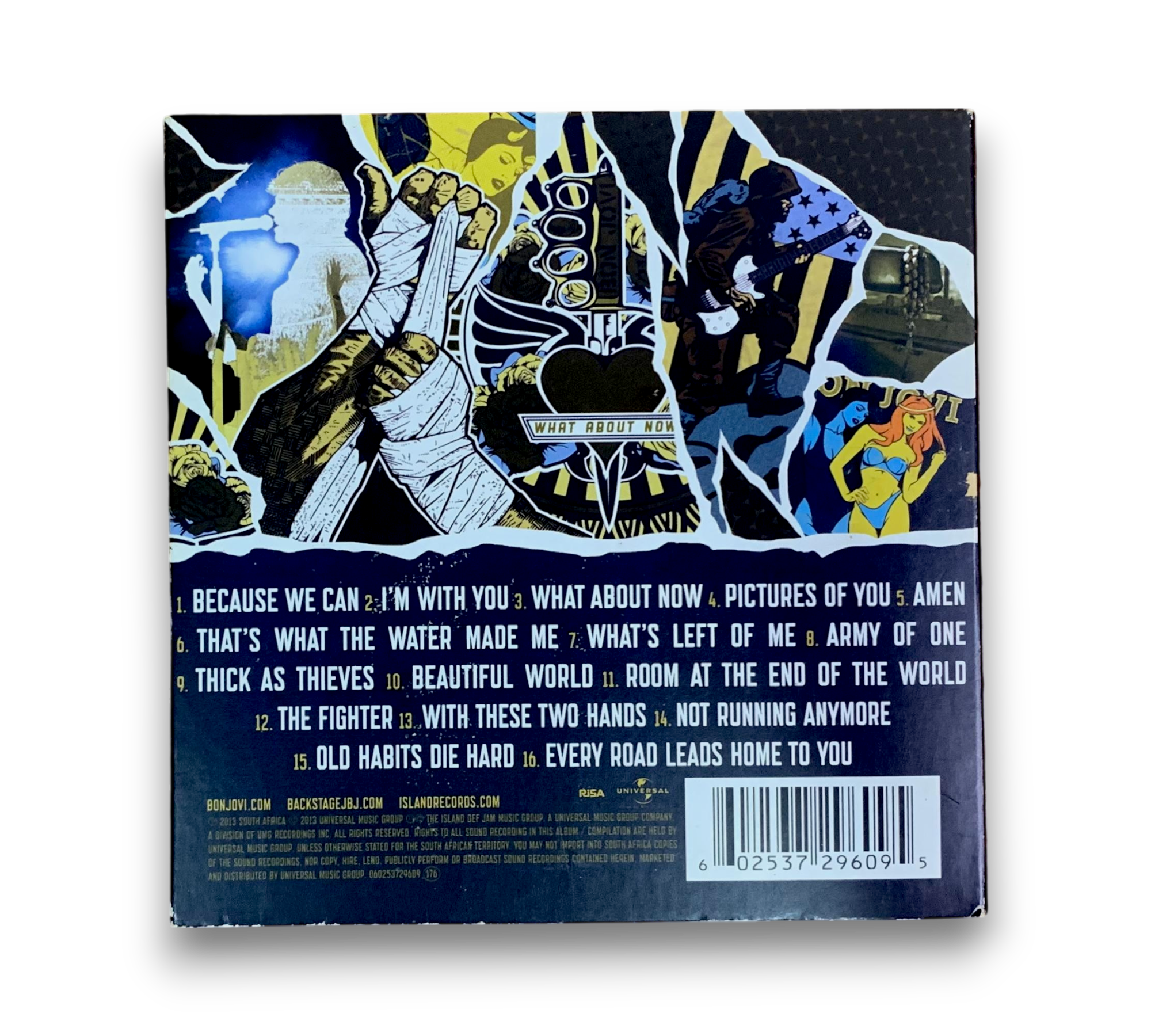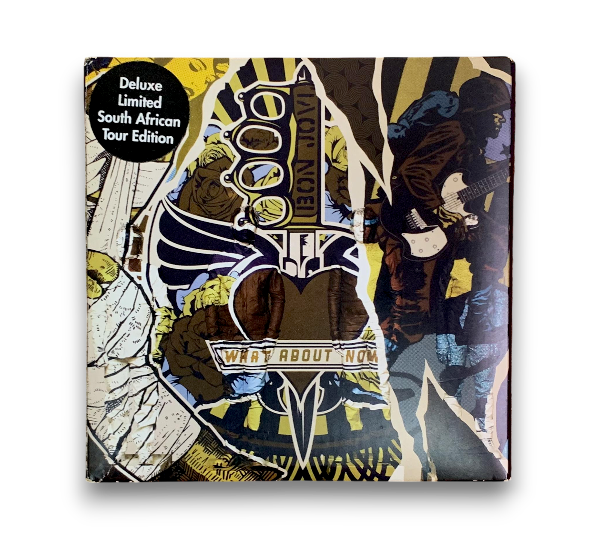Experience the powerful sounds of Bon Jovi with the deluxe limited South African tour edition of "What About Now," released in 2013. This CD features a collection of hard rock, soft rock, and pop rock tracks, including hits like "Because We Can," "I'm With You," and the title track "What About Now." This edition also includes an additional foldout poster, making it a perfect collectible for fans. For more details on the packaging and inserts, please refer to the accompanying photos.